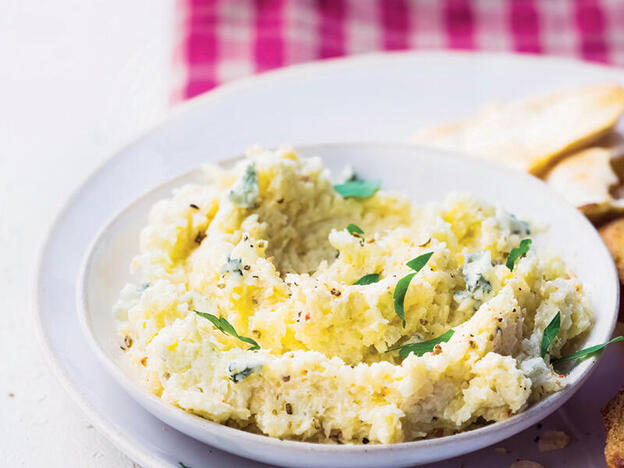 Montér FusionMaster Hakkemaskine med den fine hulskive og hak blomkål og blåskimmelost.